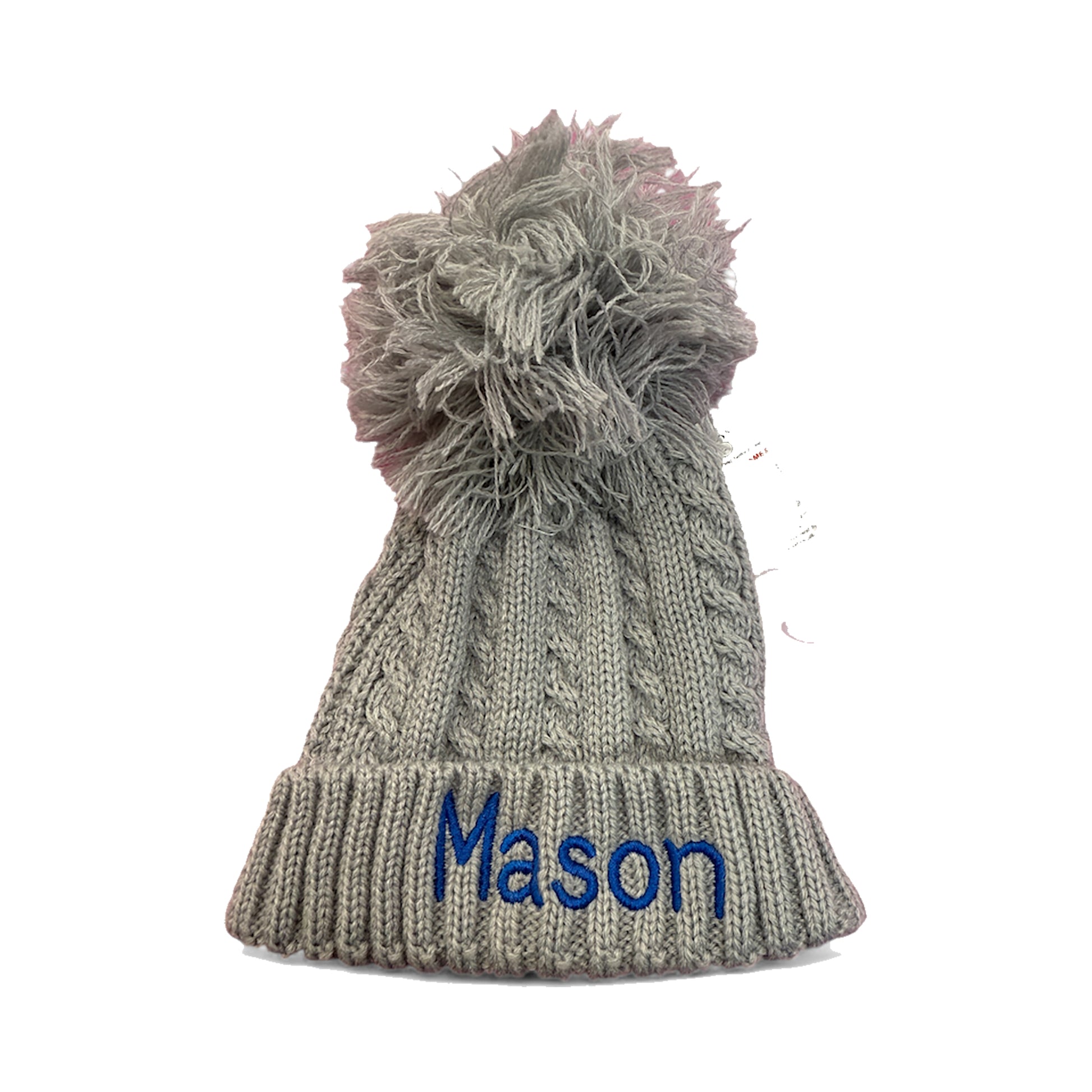 Personalised Babies Grey Cable Knit Hat With Pom Pom