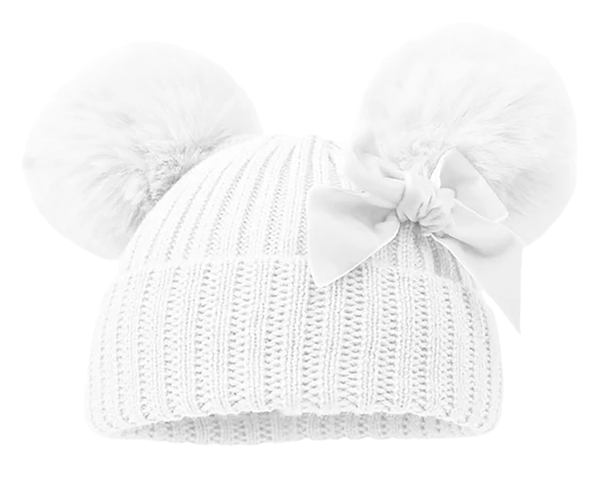 Personalised Ribbed Hat with Velvet Bow & 2 Faux Fur Pom Poms