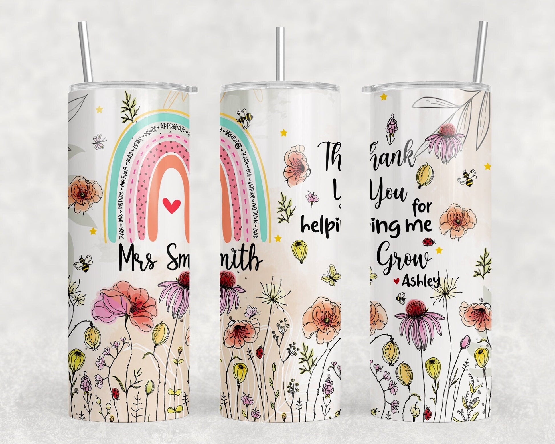 Floral rainbow teacher tumbler