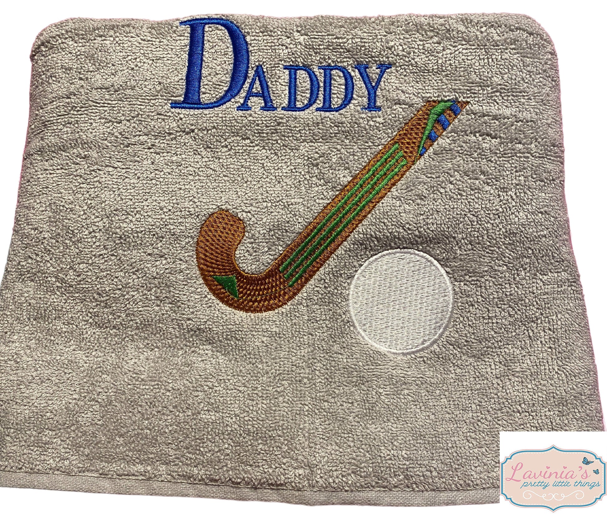 This Listing is for a Personalised Hockey Towel with Embroidered Hockey Stick and Ball.