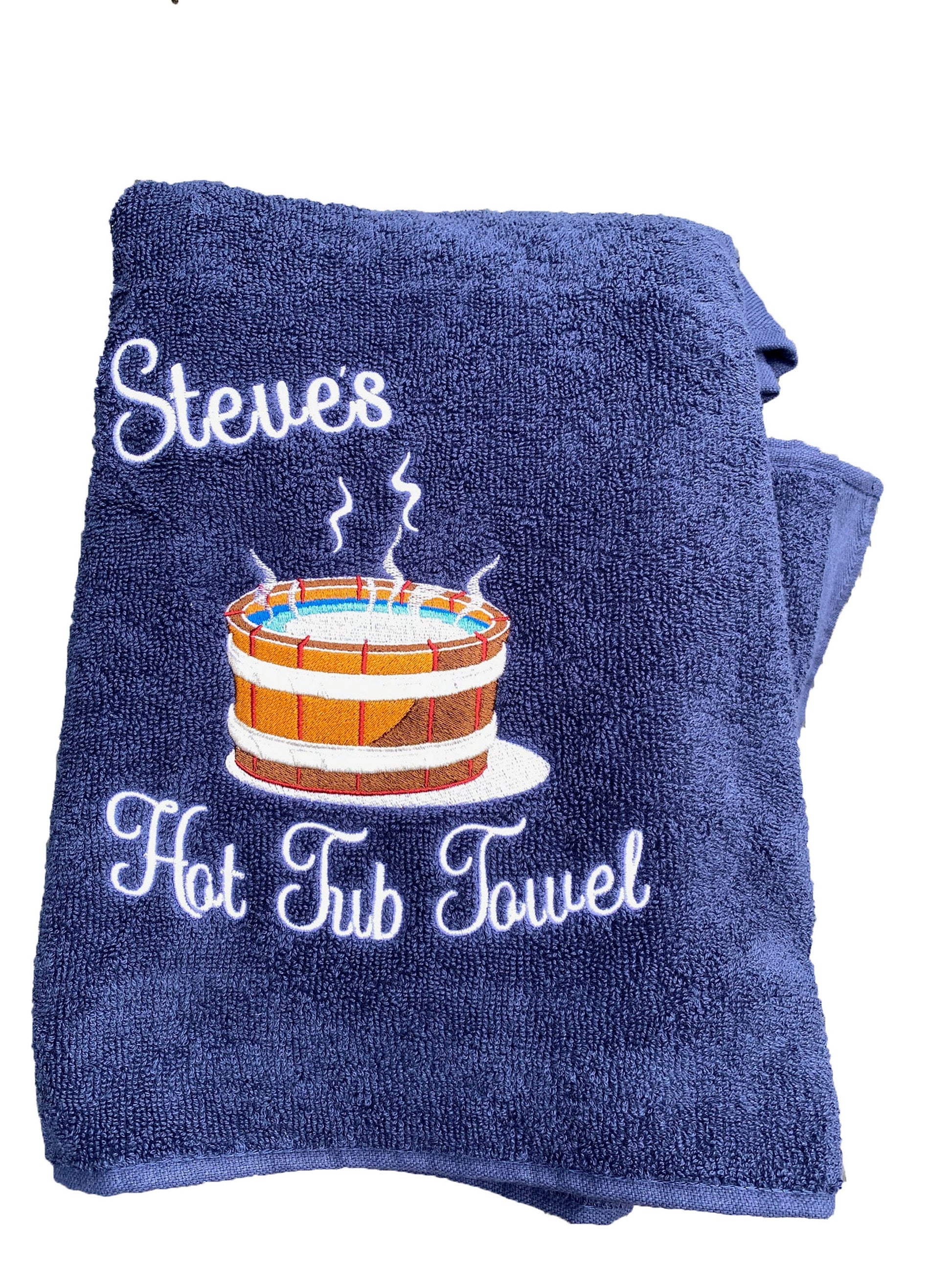 Beautiful Embroidered Hot Tub Towel with Personalised Name in white thread (please let me know if you would like the writing in a different colour)