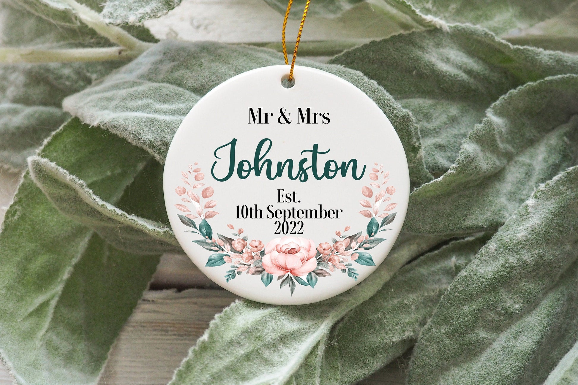 Personalised Married Ornament, Mr & Mrs Wedding Decoration, Floral Boho Ornament Keepsake