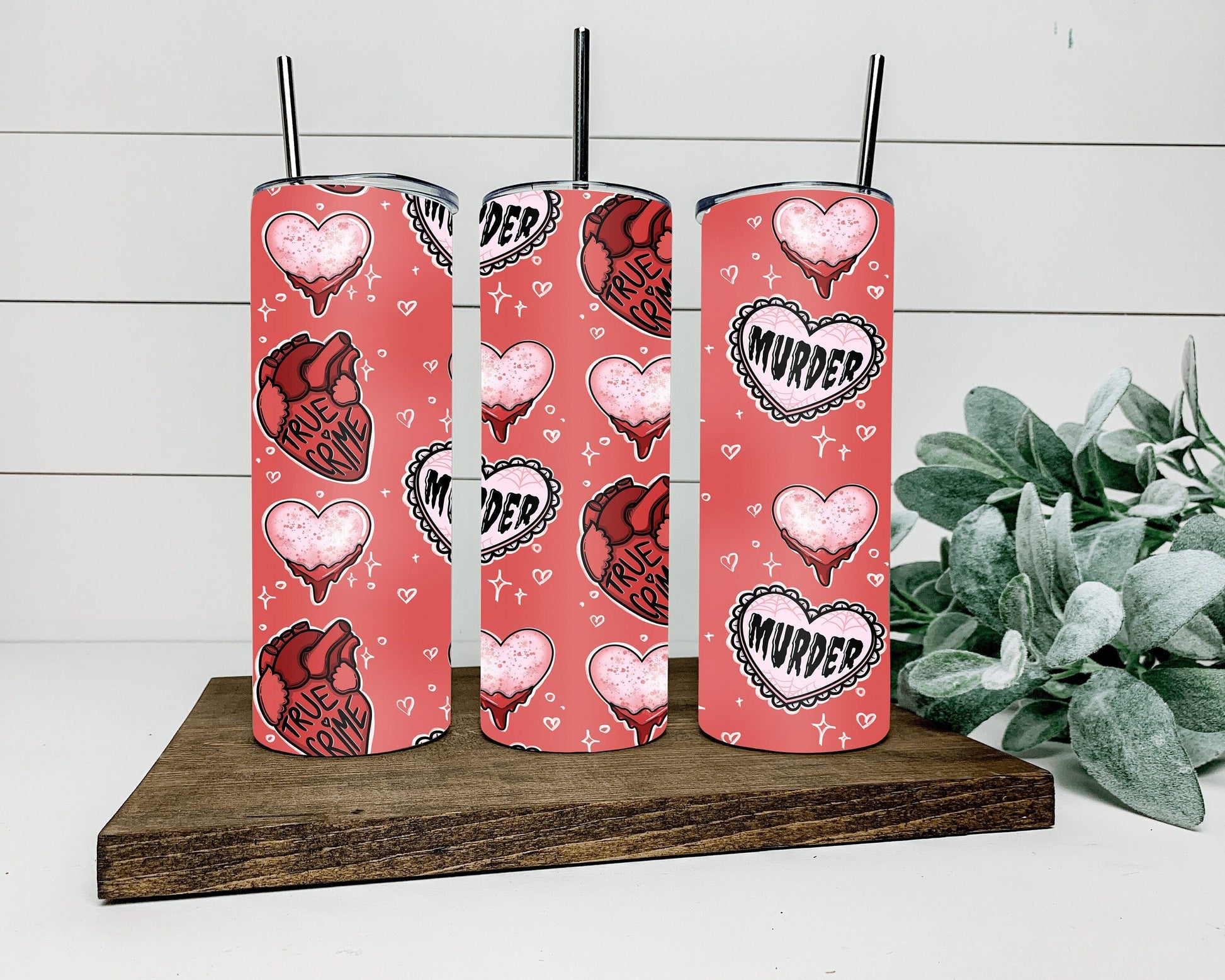 True Crime Heart Tumbler / Tumbler with Straw / Metal Straw Murder Tumbler / Gothic Winter Drinkware / Unique Gift